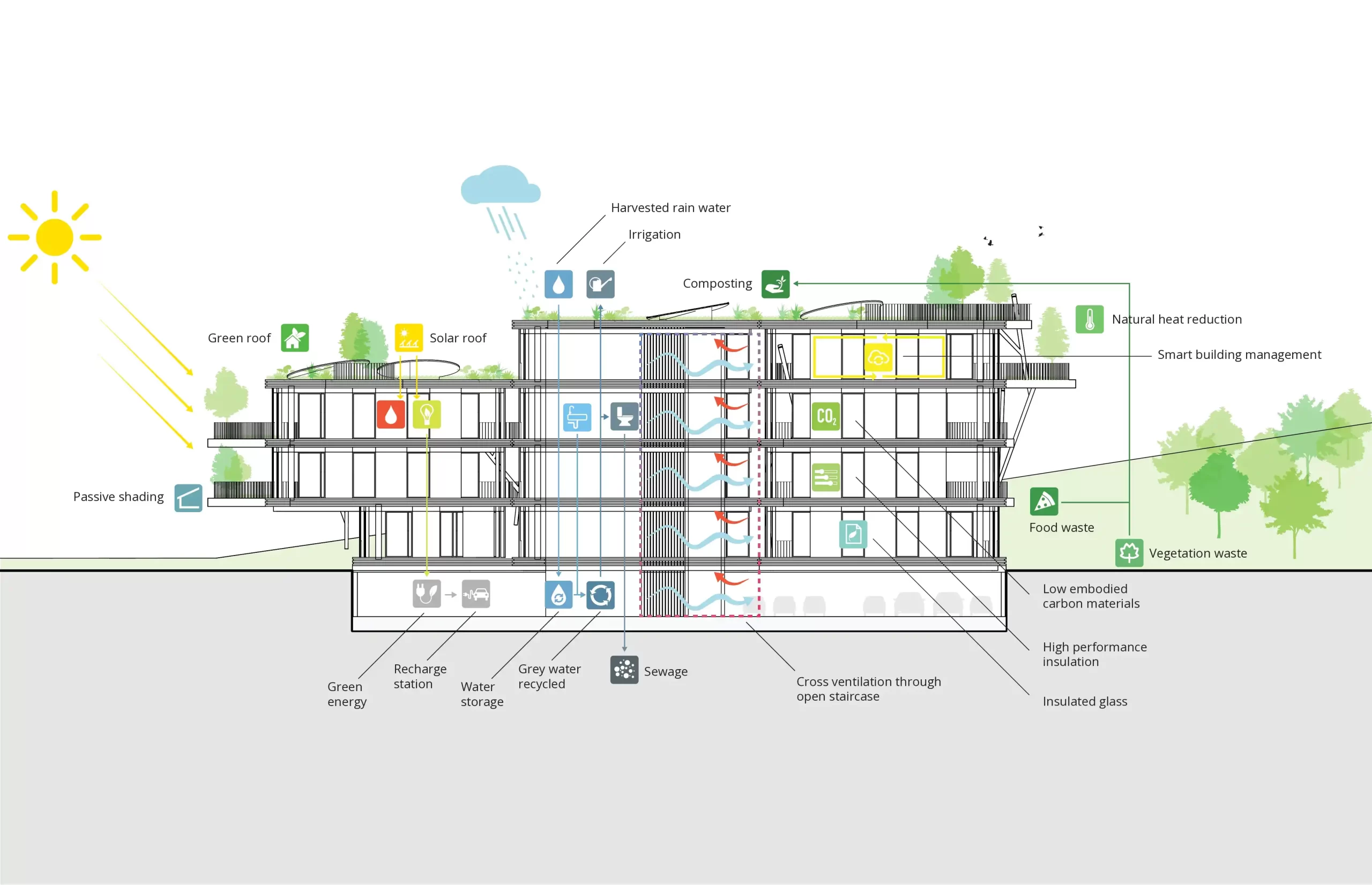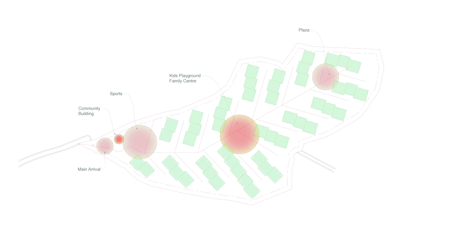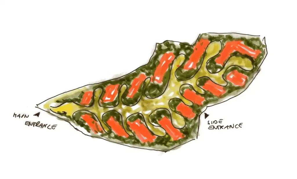 The layout ensures privacy yet connectivity at the same time, offering a peaceful retreat within the urban setting, while keeping the residents together as a community.