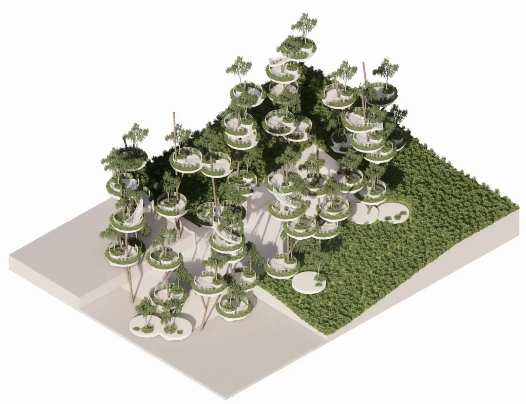 The concept merges modern architecture with nature, offering a seamless connection to the outdoors. It envisions a lifestyle where vast greenery surrounds you, providing a sense of natural freedom while still embracing the comfort and innovation of modern design.